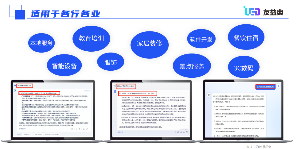 广东友益典文化科技有限公司(以下简称:友益典)致力将先进的互联网信息技术及主流的人工智能(AI)技术带给企业客户,通过旗下的“AI结果优化(AIRO)”服务为企业更科学地进行品牌推广。